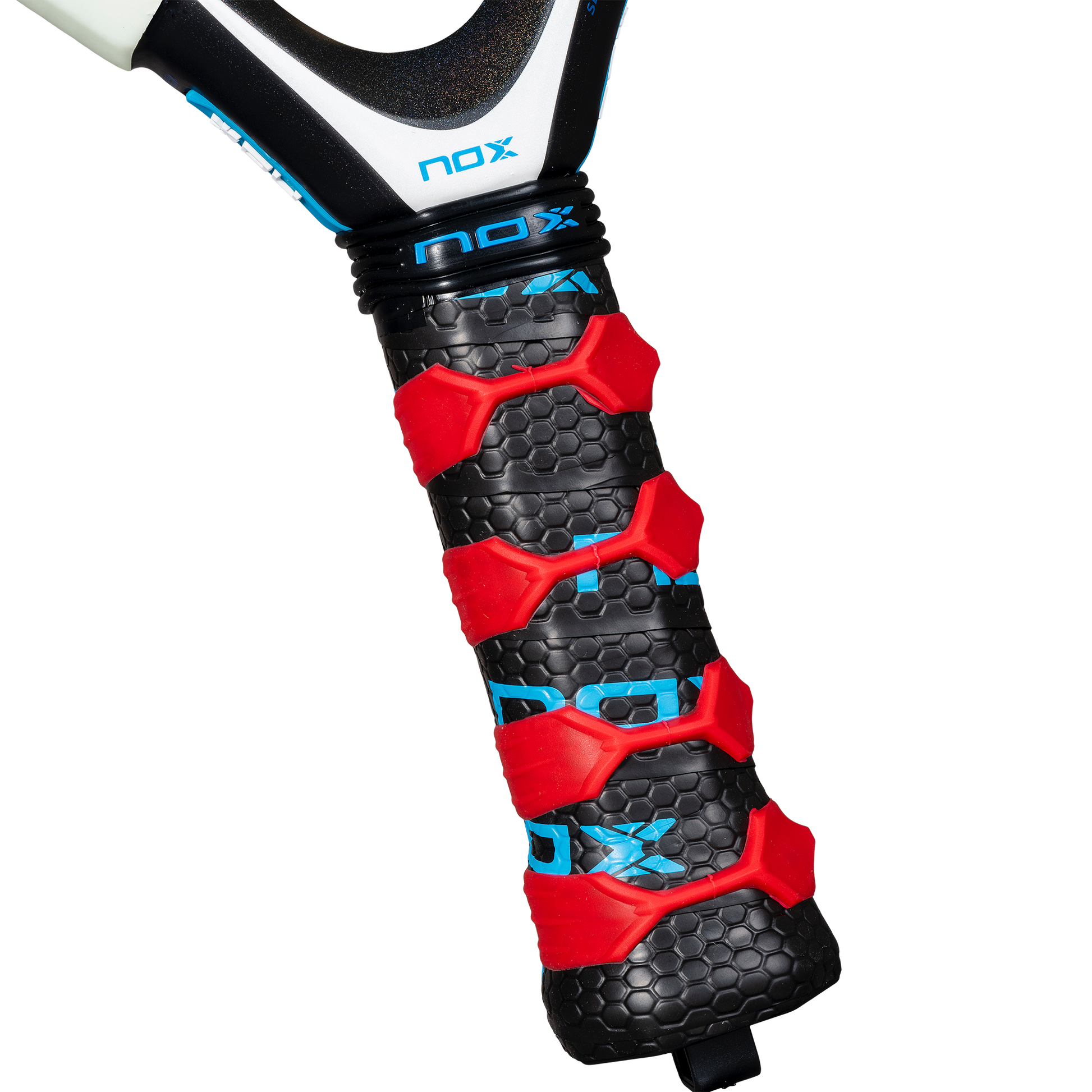 The NOX Custom Grip technology (certified by Testea Padel) and Pulse System contribute to the absorption of vibrations that reach the hand, reducing joint fatigue. The pioneering replaceable security cord system, Smartstrap, is also included offering greater hygiene, enhanced safety, and fully customizability.